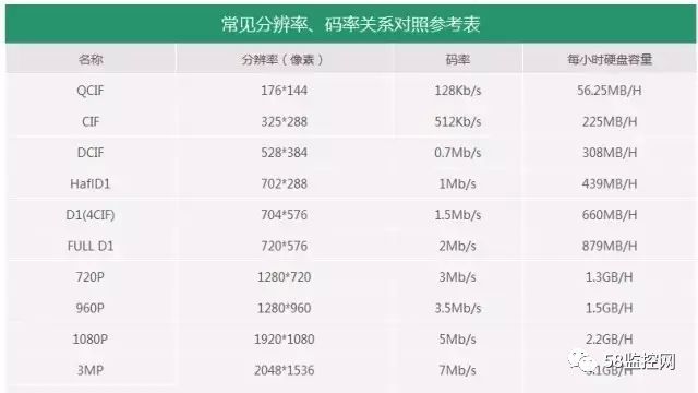 说到计算,我们要拿什么来计算呢?除了摄像头数目、需要录像的时间外,还有一个重要的数值:码率! 一般情况下,分辨率越大,码流呢也就越大,比如我们常用到的130W的摄像头,码流是2MB/S,也就是2048kbps。然后知道了码流、时间、通道数,我们就可以直接套用公式计算了。