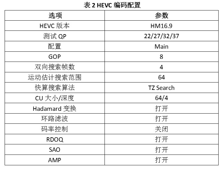 HEVC则选用官方的通用测试条件,在随机访问(random access)配置下进行测试,具体情况如下: