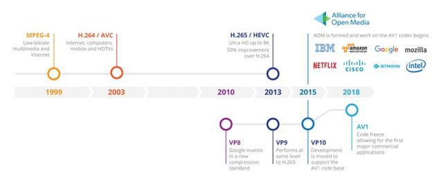 AV1是由Alliance for Open Media (AOMedia) 这个组织开发,维护的。AOMedia这个组织的发起者是Google,主要参与者有浏览器厂家Google, Mozilla和Microsoft,硬件厂家AMD, ARM, Intel和NVIDIA,以及互联网内容提供商Amazon和Netflix。