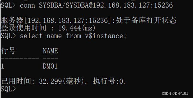 SQL> conn SYSDBA/SYSDBA@192.168.183.127:15236