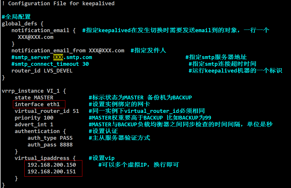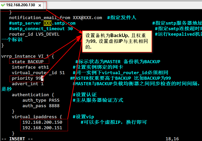 首先Keepalived可以在主机上产生一个虚拟的ip, 这里叫做vip(v是virtual的意思):192.168.200.150, keepalived会将这个vip绑定到交换机上.