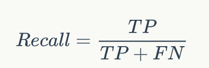 召回率是指在真实为正类的样本中被预测为正类的比例。即真实为正类的样本中,预测为正类的样本占多少。