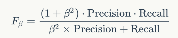 其实, Beta本质上是Recall, Precision 权重比, 当 Beta=2时, F2表明 Recall 的权重要比Precision高,Recall影响更大 (更侧重于Recall); 当Beta=0.5时, F0.5表明Recall 的权重要比Precision低, 对应的影响更小(更侧重于Precision).