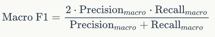 Macro 相对 Micro 而言,小类别起到的作用更大,举个例子而言,对于一个四分类问题有: