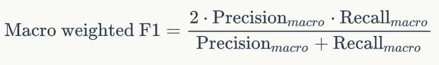 为了解决 Macro 无法衡量样本均衡问题,一个很好的方法是求加权的 Macro, 因此 Weighed F1 出现了。