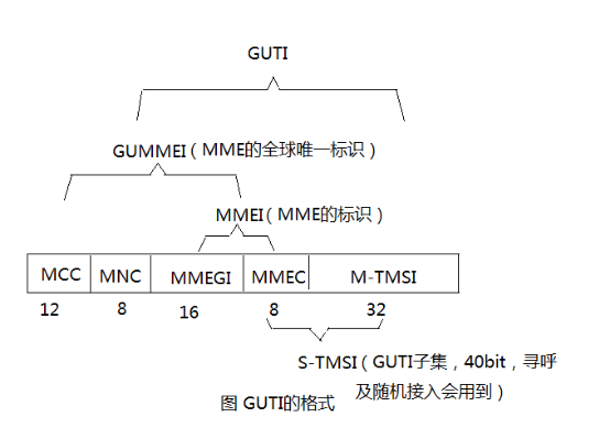 终端的标识GUTI(终端全球唯一标识),TA的标识TAI。