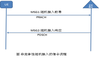 终端首先发出随机接入前导MSG1,使用目标基站分配的RAPID