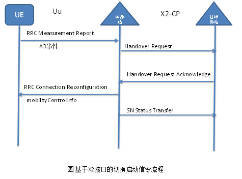 源基站收到目标基站发出的Handover Request Acknowledge 消息后,向终端发出RRC Connection Reconfiguration 消息,其中包含mobilityControlInfo的内容,用来通知终端如何切换到目标基站。