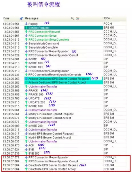 上图是VoLTE呼叫2G信令流程。流程和VoLTE呼叫VoLTE是相同的。区别是如果VoLTE使用AMR-WB语音,在协商之后,会变为AMR12.2。