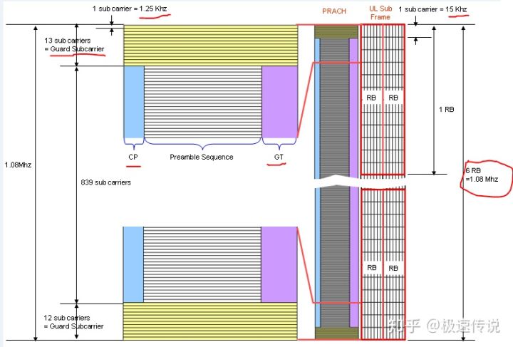 PRACH 在频域上占用6 个连续的RB(6*12=72个子载波,1.08MHz带宽 = 72*15KHz)