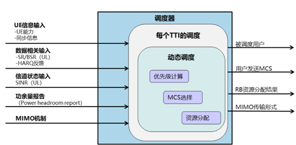- RB资源分配结果:即每个调度成功用户的RB 数,RB位置和TBS,用于数据发射。