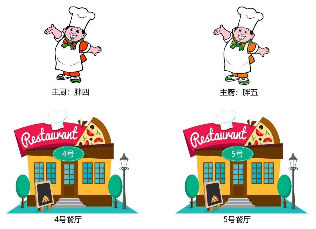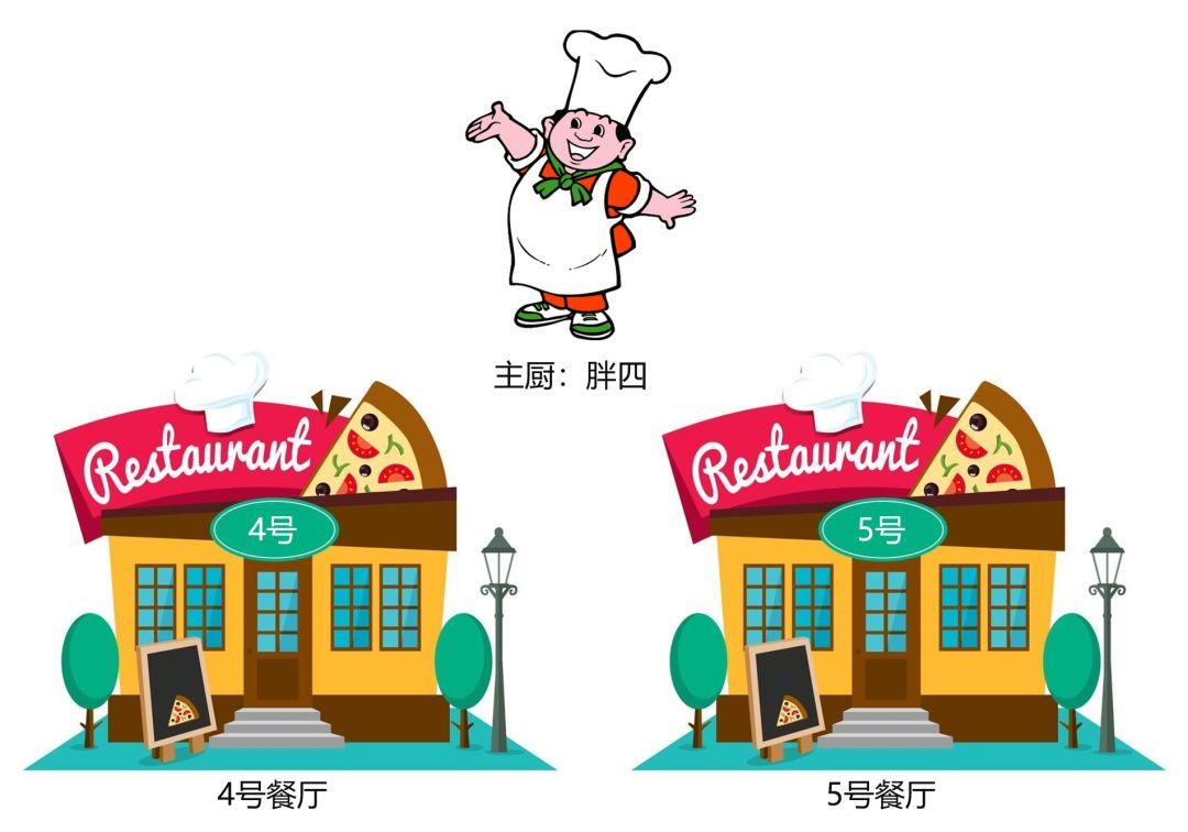 第二种方案(方案B),就是开一家全新的店。租一个门面房,取名“五号餐厅”。但是,不请新大厨。由胖四直接负责照看四号餐厅和五号餐厅。