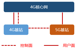 5G基站是无法直接连在4G核心网上面的,所以,它会通过4G基站接到4G核心网。