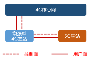需要注意的是,因为核心网是5G核心网,所以此类方式下,4G基站都需要升级成增强型4G基站。