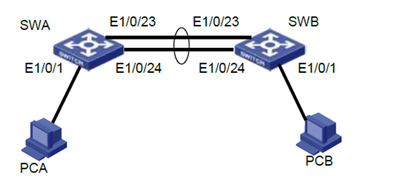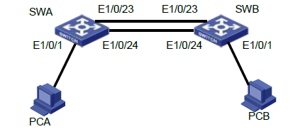 配置SWB,将端口E1/0/23 和端口E1/0/24 进行聚合使用配置命令: