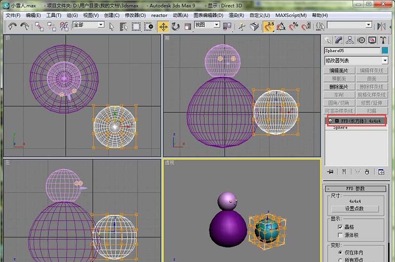 10、接下来做一对翅膀。也是画一个球体。然后给球体加载一个FFD长方体的命令。