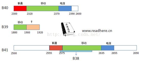 国内使用的TDD包括B38、B39、B40、B41,其中B38是B41的子集,国内运营商频段划分如下: