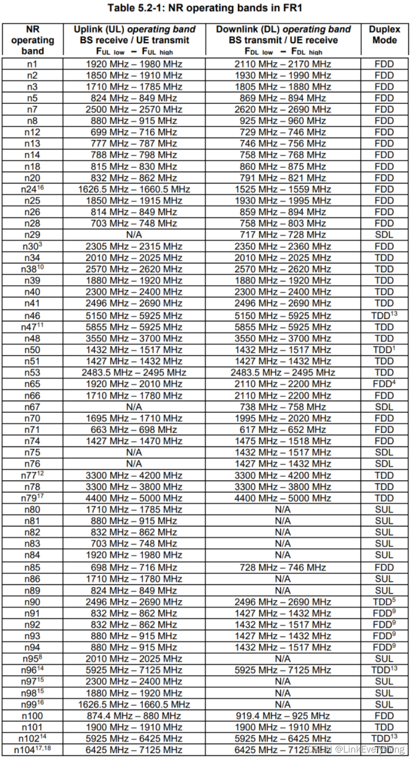 3GPP R17定义的NR FR1频段如下表: