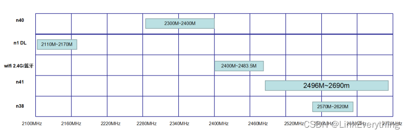 n41: 2496MHz~2690MHz,共194MHz带宽
