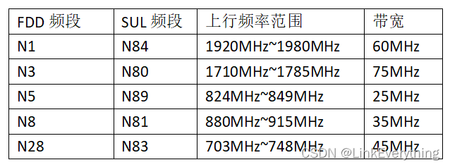 n84: UL 1920MHz~1980MHz,共60MHz带宽,与n1的上行频段相同;