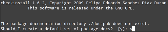 一旦checkinstall安装好,你就可以用下列格式创建一个特定的软件包