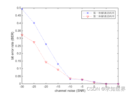图示为误码率与信噪比的函数图像,最直观的随着信噪比的增大误码率在逐渐减小。