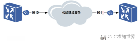 举例:比如小李托付小张给小王带个苹果,但是小张记错了,拿个梨子给了小王,小王本应该拿到苹果的,原因是小张的记忆发生了偏差导致拿错的结果。所以误码产生者不是发送一方,而是传送过程中发生变化的,在传送过程中可能遇到恶劣的传输环境而产生意外的变化,如图所示。