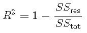 其中 SSres是平方的残差和,SStot是平方 的总和。对于模型选择,R2等效于RMSE,因为对于基于相同数据的模型,具有最小MSE的模型也将具有最大值 。![]()