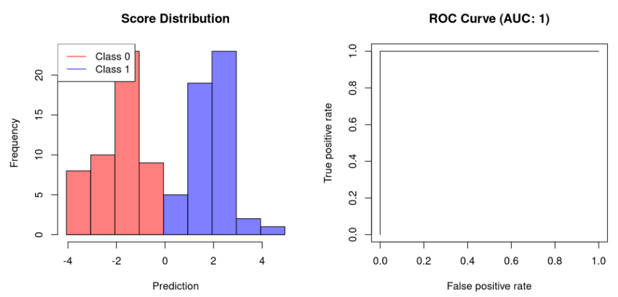 使用R,我们可以使用ROCR 包来计算AUC 。让我们首先创建一个用于绘制分类器及其AUC得分的函数: