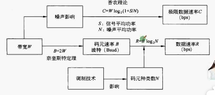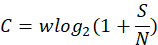 C:数据速率,W:信道带宽,S:信号的平均功率,N:噪声的平均功率,S/N:信噪比(dB)dB=10lg(S/N)