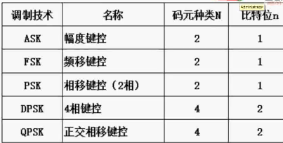 1.模拟信道调制: 幅度调制(ASK)、调频调制(FSK)、调相调制(PSK)、正交调幅(QAM)