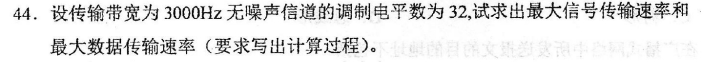 最大数据传输速率,就是奈式准则公式了。C=2Blog2(32)=2*3000*5=30Kbps