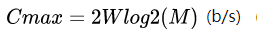 根据之前Baud单位的定义,如果编码方式的码元状态数为M,得出极限信息传输速率(信道容量)Cmax: