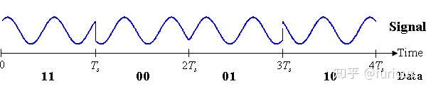 也可以叫符号(symbol)。通过不同的调制方式(诸如FSK、QAM等等),可以在一个码元符号上负载多个bit位信息。举个例子,下图是4QAM(即QPSK)调制的全部四种码元符号,一种符号可以带两个bit的信息。