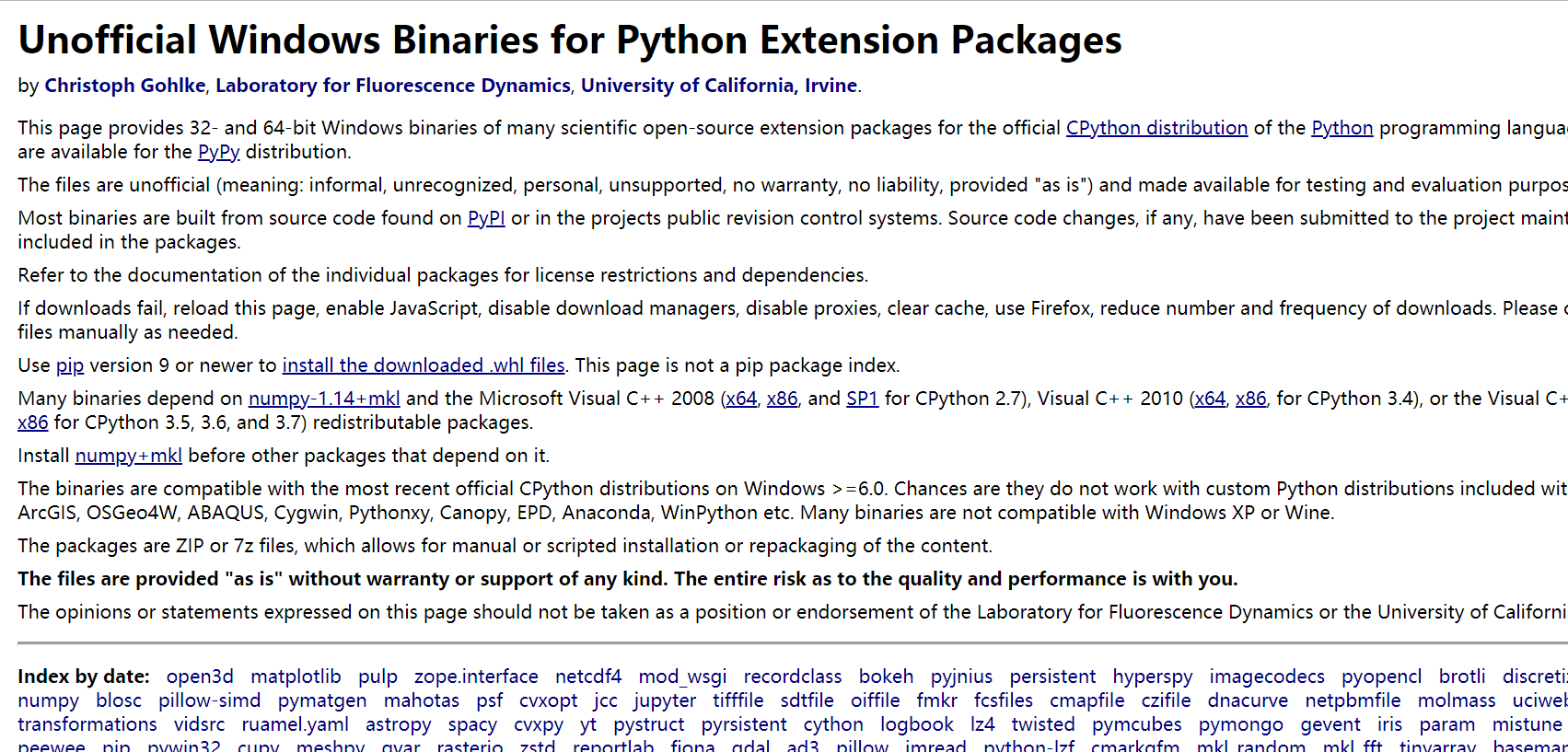 下载链接:https://www.lfd.uci.edu/~gohlke/pythonlibs/