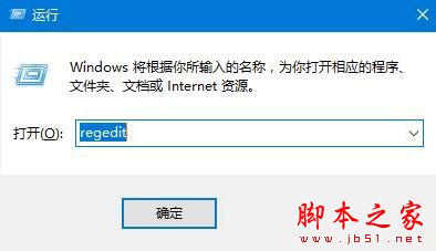 2、在运行框中输入“regedit”点击确定打开【注册表】;