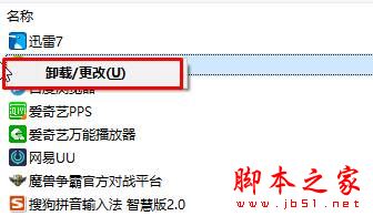 7、在里面找到“QQ管家”,单击右键,选择“卸载/更改”,将其卸载,然后重新安装即可解决。