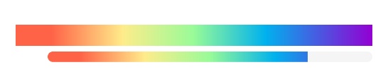 1 self.gradientLayer = [CAGradientLayer layer]; 2 self.gradientLayer.frame = bgLayer.frame; 3 self.gradientLayer.masksToBounds = YES; 4 self.gradientLayer.cornerRadius = kProcessHeight / 2; 5 // 设置渐变颜色数组 6 [self.gradientLayer setColors:[NSArray arrayWithObjects: 7 (id)[[UIColor colorWithHex:0xFF6347] CGColor], 8 [(id)[UIColor colorWithHex:0xFFEC8B] CGColor], 9 (id)[[UIColor colorWithHex:0xEEEE00] CGColor], 10 (id)[[UIColor colorWithHex:0x7FFF00] CGColor], 11 nil]]; 12 // 设置渐变位置数组 13 [self.gradientLayer setLocations:@[@0.3, @0.5, @0.7, @1]]; 14 // 设置渐变开始和结束位置 15 [self.gradientLayer setStartPoint:CGPointMake(0, 0)]; 16 [self.gradientLayer setEndPoint:CGPointMake(1, 0)];