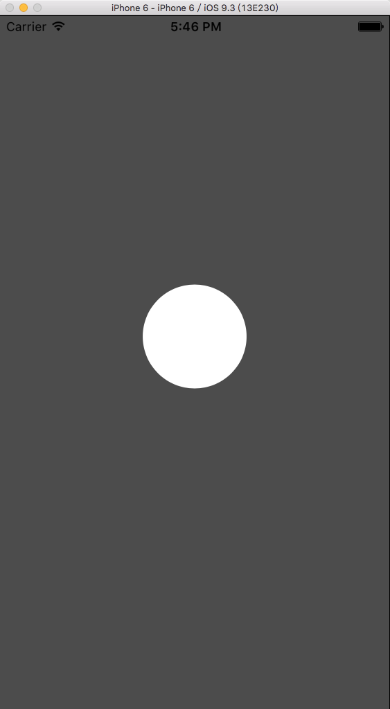 1 UIView *backgroundView = [[UIView alloc] init]; 2 backgroundView.frame = self.view.bounds; 3 backgroundView.backgroundColor = [UIColor colorWithWhite:0 alpha:0.7]; 4 [self.view addSubview:backgroundView]; 5 // 创建一个全屏大的path 6 UIBezierPath *path = [UIBezierPath bezierPathWithRect:self.view.bounds]; 7 // 创建一个圆形path 8 UIBezierPath *circlePath = [UIBezierPath bezierPathWithArcCenter:CGPointMake(self.view.center.x, self.view.center.y - 25) 9 radius:50 10 startAngle:0 11 endAngle:2 * M_PI 12 clockwise:NO]; 13 [path appendPath:circlePath]; 14 15 CAShapeLayer *shapeLayer = [CAShapeLayer layer]; 16 shapeLayer.path = path.CGPath; 17 backgroundView.layer.mask = shapeLayer;