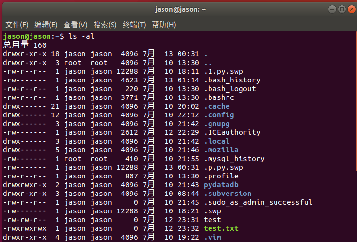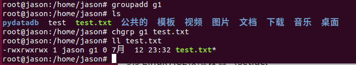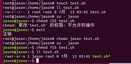 (1)将test.txt所有者改为jason: