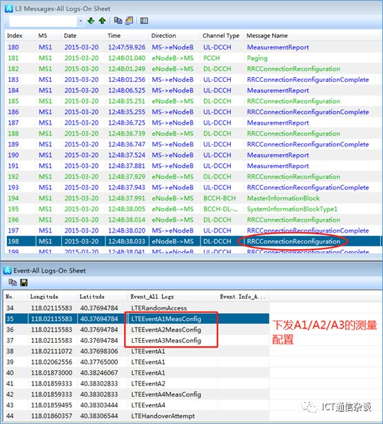 1、RRC建立完成后,下发同频,异频两个测量控制