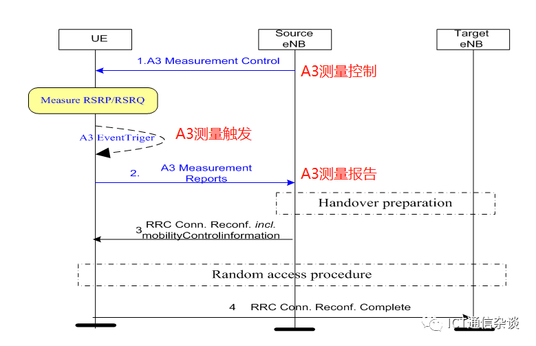 2、切换后,目标基站收到UE发送的rrcConnectionReconfigurationComplete后,下发以上三条测量控制。