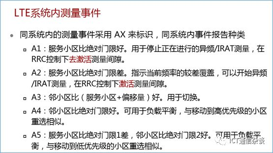 异频切换通过事件A4触发,采取事件转周期的上报方式。事件A4的触发,即邻区质量高于一定门限值。所以,A4事件触发机制,是邻区质量高于绝对门限值的结果;
