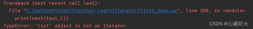 若是直接对可迭代对象使用next()遍历会有什么结果呢?如下: