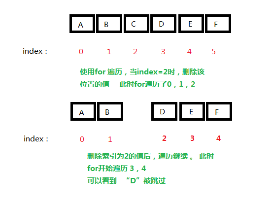 易踩坑点:使用iter()方法时经常会遇到ConcurrentModificationException异常,这通常是由于在使用Iter遍历容器的同时又对容器做增加或删除操作所导致的,由于遍历时是按照索引执行的 ,删除已经遍历过的索引时,会导致后面的索引统一向前挪,举个栗子: