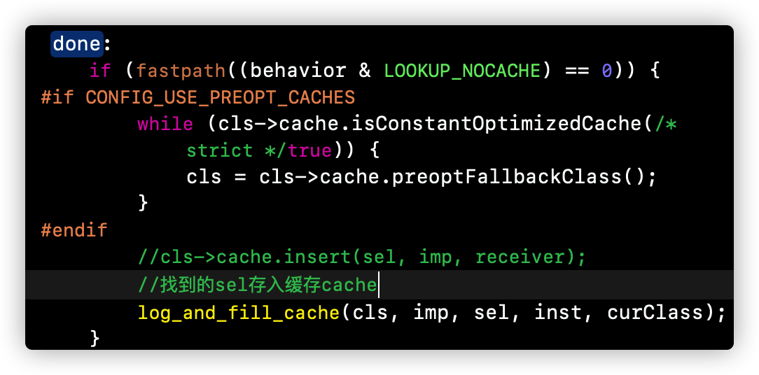 即使是父类中找到的方法,也会存储在当前类的缓存cache中