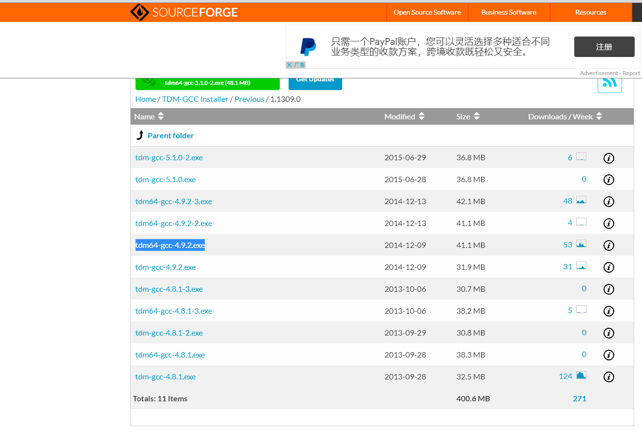 这里我下载的是tdm64-gcc-4.9.2.exe版本。