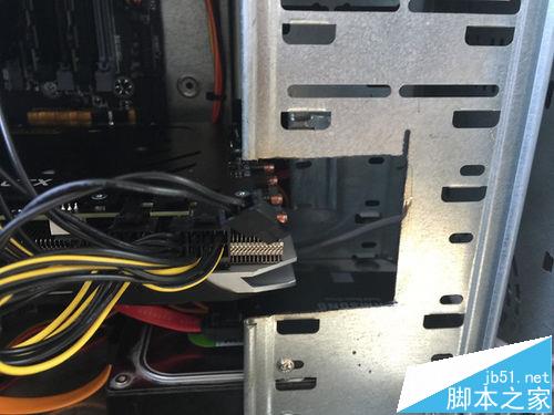 3、在切下面那一半硬盘挂架时,用力过猛,把主板上的一个铝的散热片切了一条凹痕,大概2mm深,讨厌的光污染。不明白为什么现在的主板、键盘、鼠标、显卡一律RGB光污染。