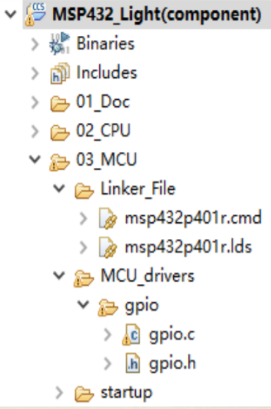 | MCU文件夹 | MCU (Linker File、MCU drivers、Startup) | 链接文件夹,存放链接文件。 |