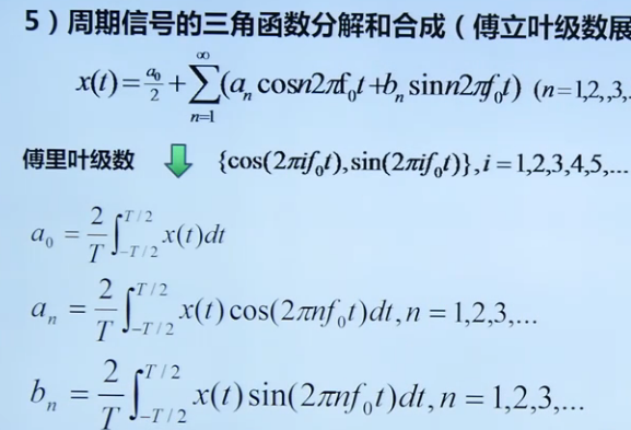 周期信号在三角函数集下的投影:x(t)=x(t+nT) => {cos(2×pi×i×f0×t),sin(2×pi×i×f0×t)}